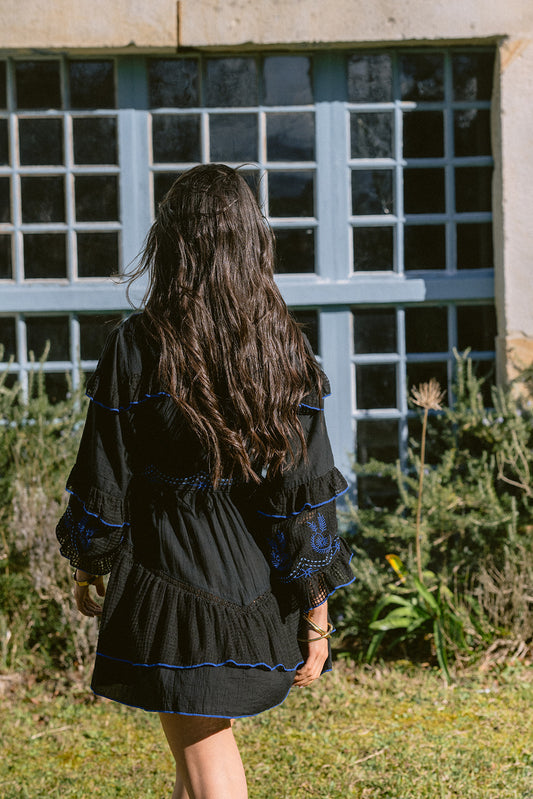 Savanna blue vestido corto bordado