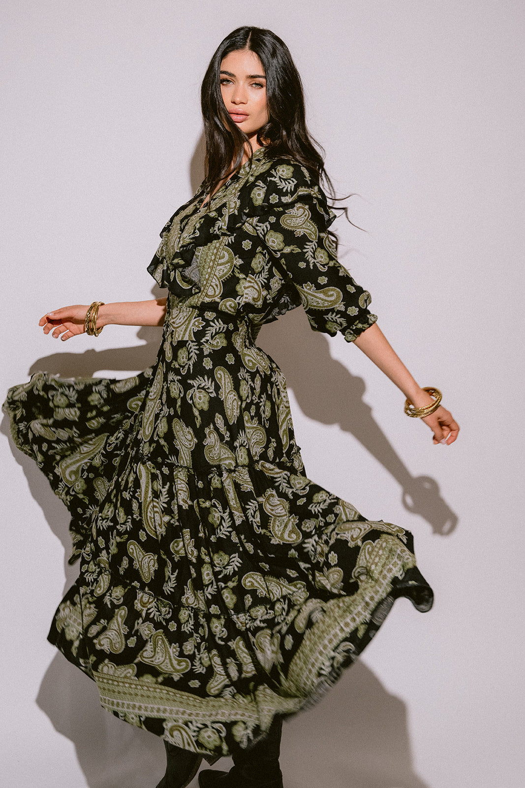 Descubre la Blusa Verona green de viscosa con estampado en pasley que te aportará un look elegante a la vez que comodísimo. Combínala con unos vaqueros de cintura alta para un look chic sin esfuerzo. ¡Adopta tu estilo único e irradia confianza!