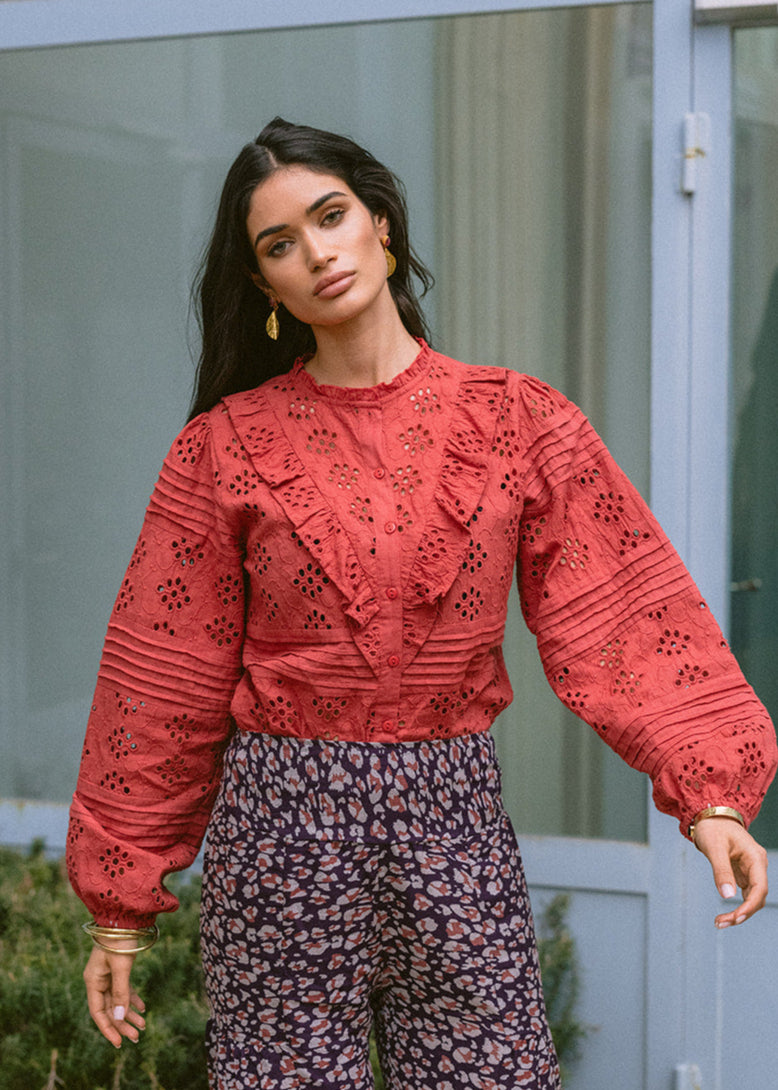 Descubre la Blusa negra con encaje inglès Dalia shifly una sofisticada prenda con mucho detalle. El tejido de algodón y los detalles bordados la convierten en un complemento esencial de tu armario. Combínala con unos vaqueros de cintura alta para un look chic sin esfuerzo. ¡Adopta tu estilo único e irradia confianza!