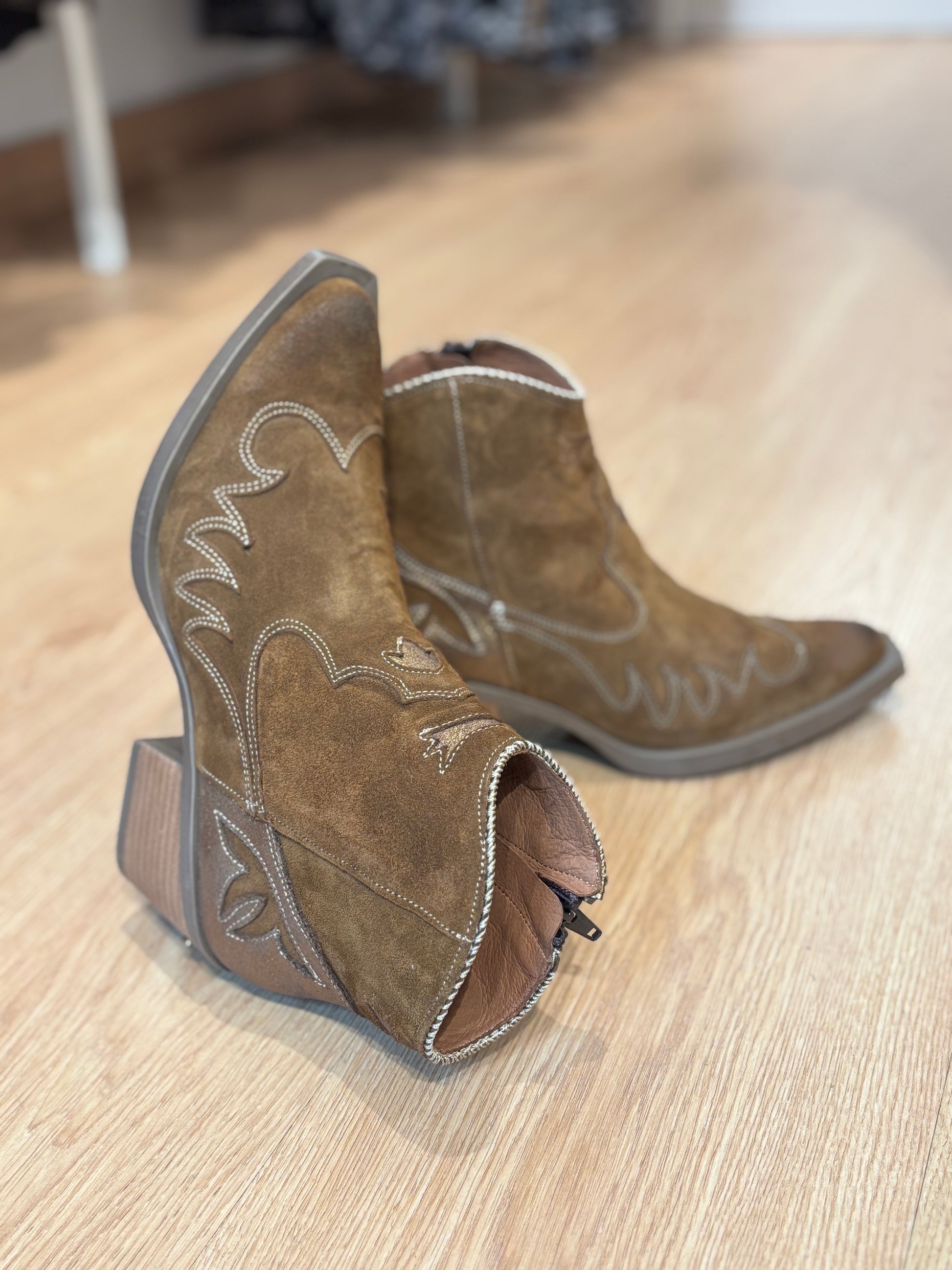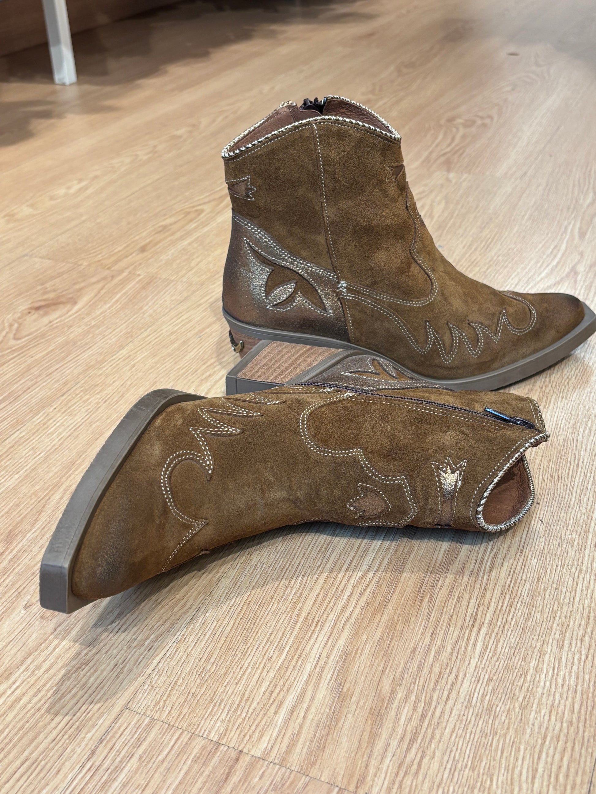 Botines de piel girada grises con detalles print animal. Hecho a mano artesanalmente en España.
