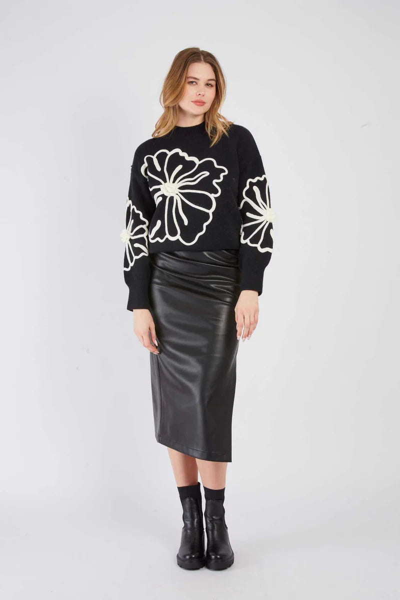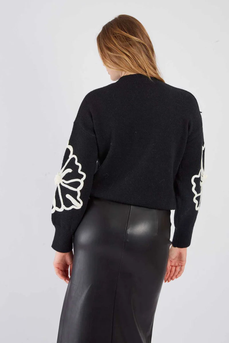 Suéter de punto suave y texturizado con un estampado floral que le da un toque femenino. Corte recto con puños, cuello redondo y bajo acanalados para un ajuste cómodo. Llévalo entretiempo o en invierno para un look acogedor y sofisticado.